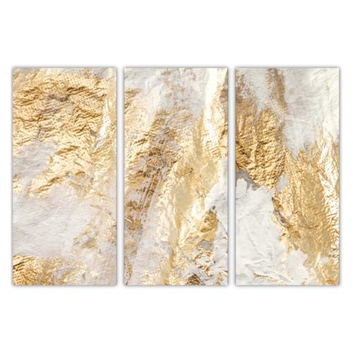 AREDE Uppsättning av 3 väggkonstmålning, Väggdekoration, Tavlor Sovrum, Bild, Affisch, Abstraktion i Vitt och Guld (90 x 60 cm) Hemmakontor, Väggdekor för Vardagsrum, Dekoration Redo att Hänga Upp