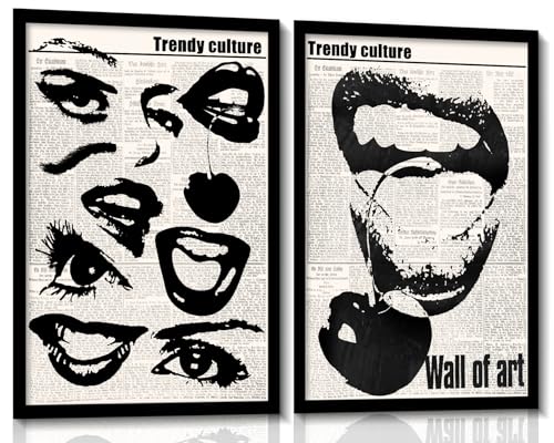 Vintage funky kanvas väggkonst 70-tal knasiga flickiga ögon läppar rum estetik affisch Preppy svart och vit abstrakta tryck trendiga centrum flickrum väggdekor för vardagsrum, vackra sovrum, matsal