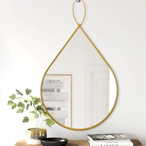 FEUFOAM Oregelbunden väggspegel med guldmetall inramad modern tår droppe hängande speglar för väggdekor sovrum vardagsrum badrumsspegel liten