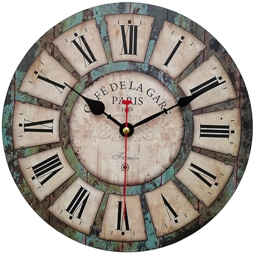 Qukueoy 30,5 cm tyst rund träväggklocka rustik lantlig stil, batteridriven, vintage bondgård väggdekor för vardagsrum, kök, sovrum, kontor