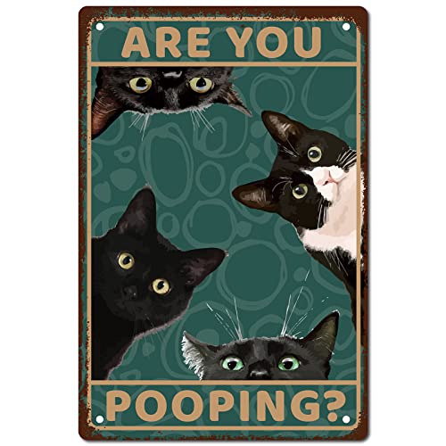 CREATCABIN Svart kattplåtskylt är du pooping metall vintage retro väggkonst hängande järnmålning affisch plack roliga djur familj väggdekor för vardagsrum badrum café dekor 8x12 tum