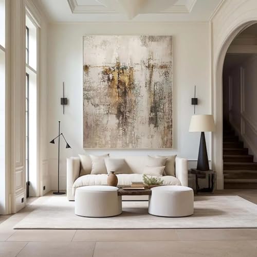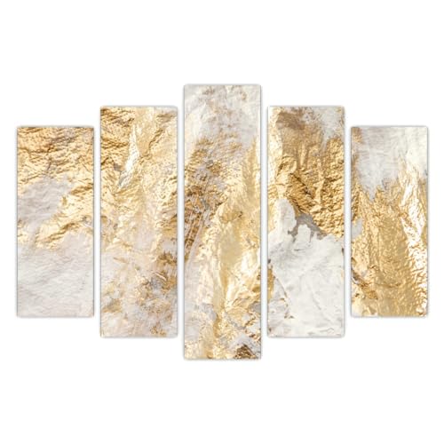 AREDE Uppsättning av 5 väggkonstmålning, bild, affisch, abstraktion i vitt och guld (120 x 80 cm) hem kontor, väggdekor vardagsrum, sovrum, dekoration redo att hänga upp