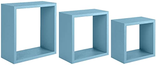 Homemania Inkubo väggdekor - vardagsrum, sovrum, kontor - MDF, blå 35 X 35 X 15,5/30 x 30 X 15,5/25 X 25 X 15,5
