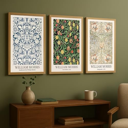 PWAAHDC Uppsättning av 3 William Morris kanvas väggkonsttryck – neutral vintage stil affischer för vardagsrum väggdekor (oramad, A3)