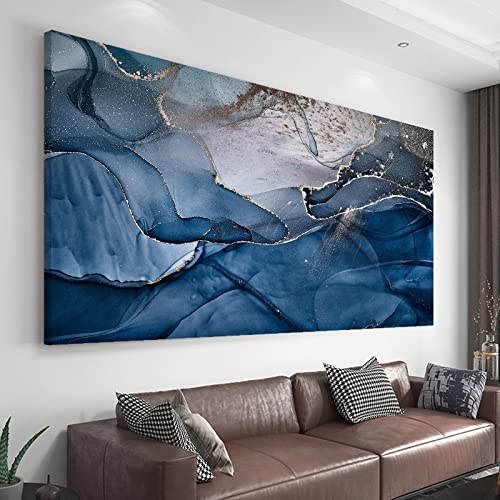 Stor canvas väggkonst abstrakt blå silver moln HD-tryck på duk för vardagsrum väggdekor rörig textur moln inspirerande affisch för kontor 75 x 150 cm (29,5 x 59 tum) inre ram