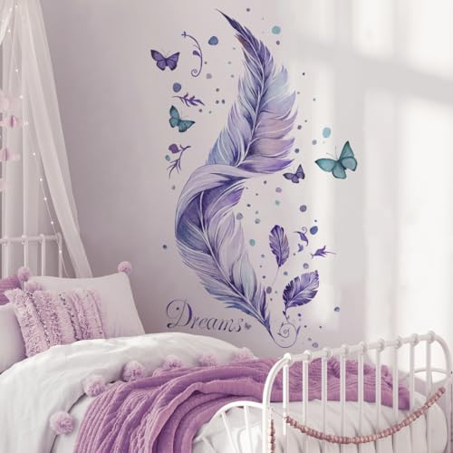 Runtoo Fjäder Väggdekaler Lila Fjärilar Väggdekor Badrum Sovrum Vardagsrum