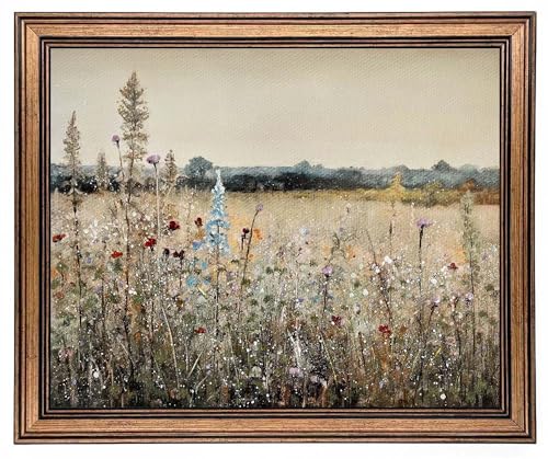Yeechine Guldinramad vintage väggkonst klassiskt franskt landskap vildblommor botanisk målning kanvastryck kök vardagsrum väggdekor (Champ Fleuri, 20 x 25 cm)