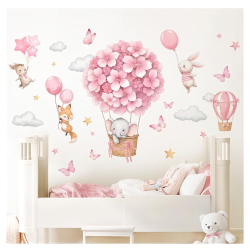 Little Deco Väggdekal, djur, elefant, varmluftsballong, väggklistermärke, barnrum, ballong, räv, väggklistermärke, hare, babyrum, sovrum, väggdekoration, DL5129-03