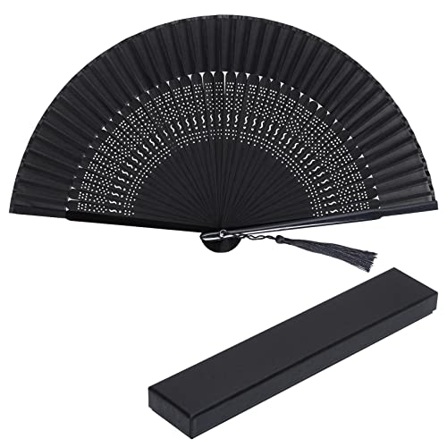 baotongle svart solfjäder vikbar solfjäder kinesisk bambu ihåliga solfjäder tyg solfjäder för bröllop och karneval, fest, sommar, hus väggdekoration