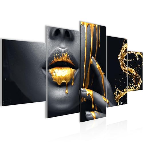 Runa Art - Väggmålningar Läppar Guld Svart 200 x 100 cm 5 Delar XXL Väggdekoration Design 041551a