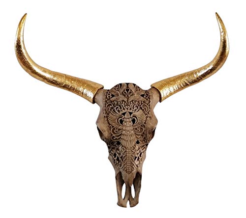 MichaelNoll tjurhuvud bullhuvud tjurskalle horn väggdekoration polyresin guld jättestor – modern väggdekoration för sovrum eller vardagsrum – dekorationsdekoration – XXL 72 cm