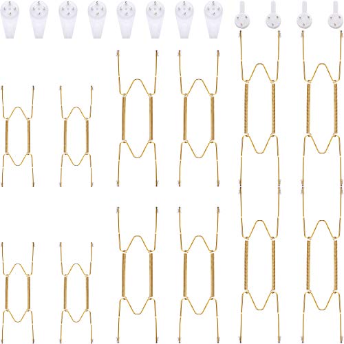 12 st tallrikhängare för vägg, tråd av rostfritt stål, osynliga kraftiga hållare för uppvisning, 12 stycken krokar för väggdekoration (guld, 15, 20 och 25 cm)