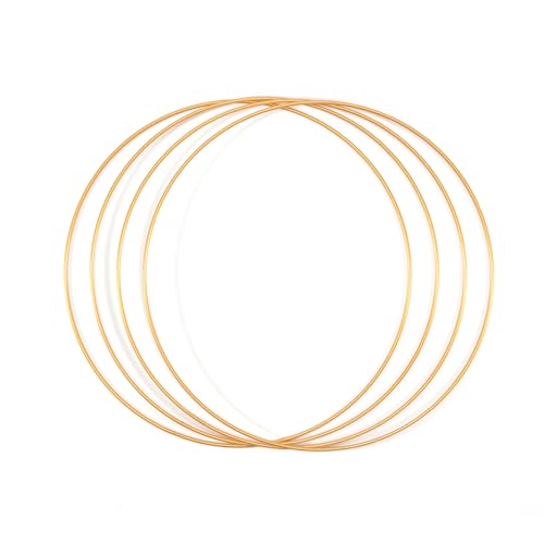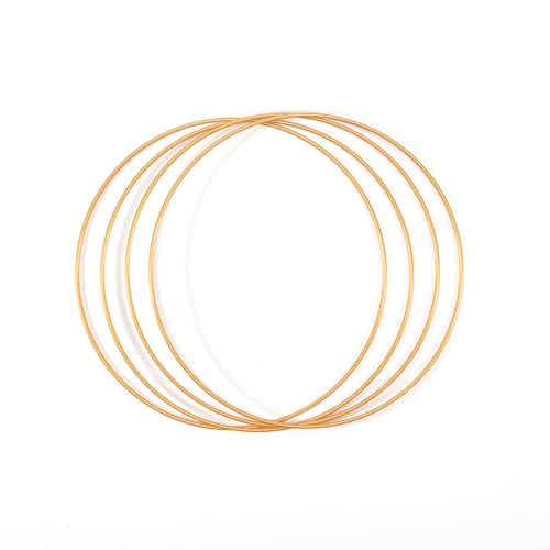 Vaessen Creative Metallringar Ø 30 cm x 3 mm i Färgen Guld - 4 Stålringar Cirkel - Dekoringar i Metall för Pyssel, Torkade Blommor, Makramé, Drömfångare, Mobiler och Väggdekoration