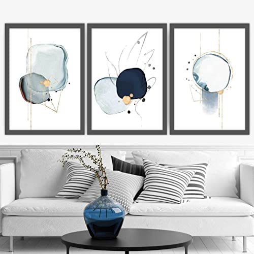 Artze Wall Art Geometriska abstrakta texturerade cirklar väggdekoration konsttryck 3-delat set, A3-storlek, marinblå/orange/guld