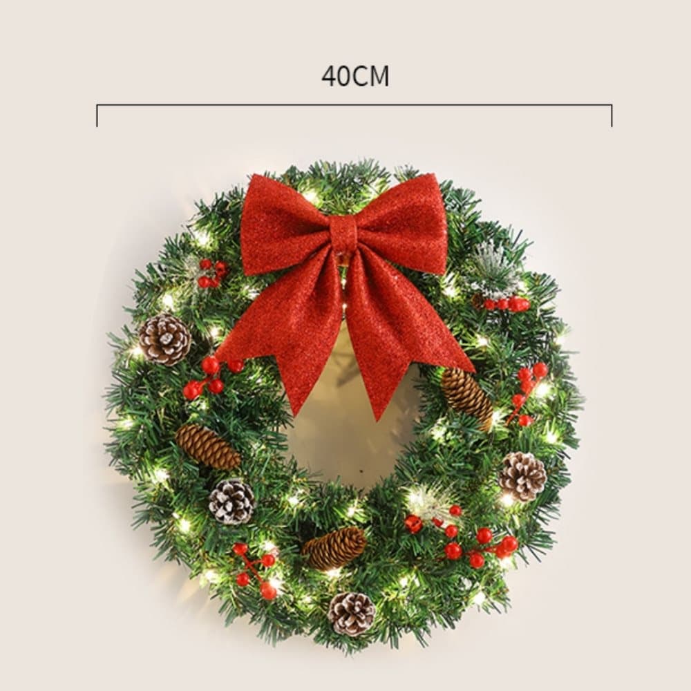 Julkrans med ljus Kotte, rosett och bär Julkrans för ytterdörren Inomhus Utomhus Väggdekoration Hem