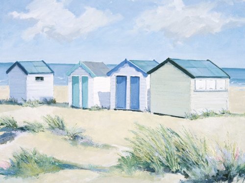 Jane Hewlett WDC22078 strandhyddor på en ljus dag kanvastryck, väggdekoration, flerfärgad, 60 x 80 cm
