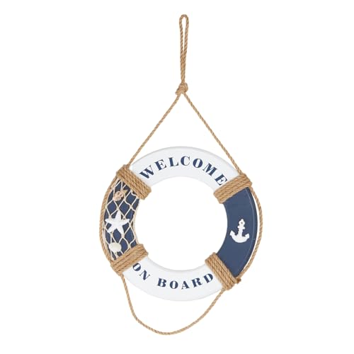 HEITMANN DECO Trä-räddningsring välkommen ombord – maritim dekoration för inomhusbruk – väggdekoration, badrum – blåvit