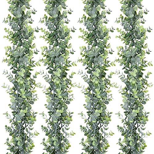 DearHouse 4-pack konstgjord eukalyptusgirlang, konstgjorda vinrankor, hängande eukalyptusblad, grönska, girlang för bröllopsbakgrund, båge, väggdekoration, 1,5 m/st UV-skyddade, inomhus, utomhus