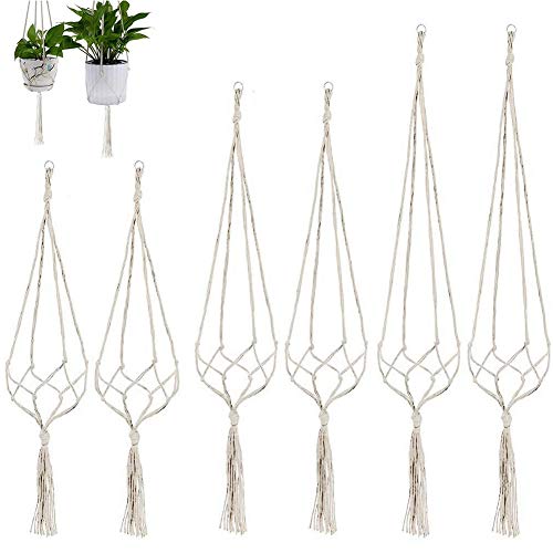CYH 6 Stycken Macramé Växt Hängare Set - Bomullsrep Hängande Blomsterkorg Hängande - Robust Macramé Växthållare Hängare - för Inomhus Utomhus Tak Balkonger Väggdekoration