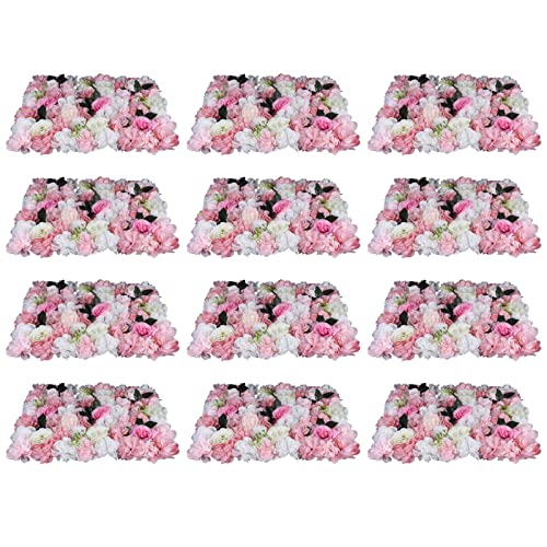 OUKANING 12 stycken konstgjorda väggpaneler 40 x 60 cm, ihåligt rutnät, X-formad fäststång, konstgjorda växter väggdekoration, sidentyg, inomhus/utomhus (typ D)