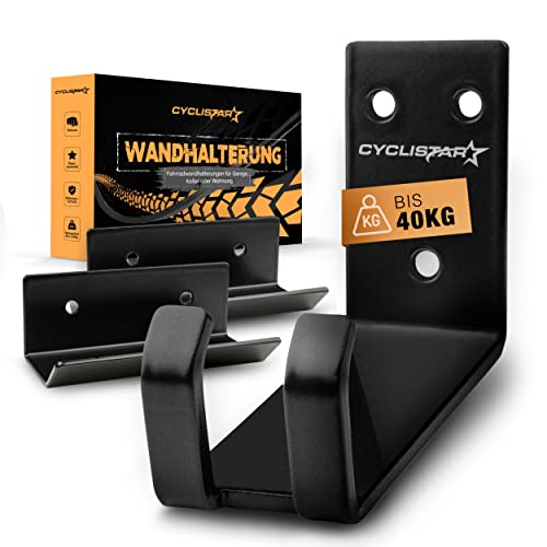 CYCLISTAR Väggfäste för cykel upp till 40 kg, robust väggfäste för mountainbike, landsvägscykel, e-cykel, väggfäste för pedal + 2 x monteringsfäste