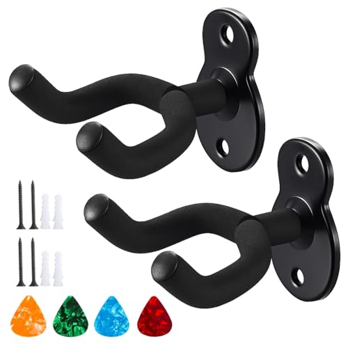 Alnicov Vägghängare, väggfäste för gitarr, 2-pack gitarrhängare krokhållare stativ för olika gitarrer bas fiol ukulele