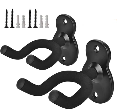 LINRAX Väggfäste för gitarr, 2-pack vägghängare, svart valnötskrok med skruvar, U-formad gitarrhållare för akustisk klassisk elgitarr bas banjomandolin, gitarrväggstativ