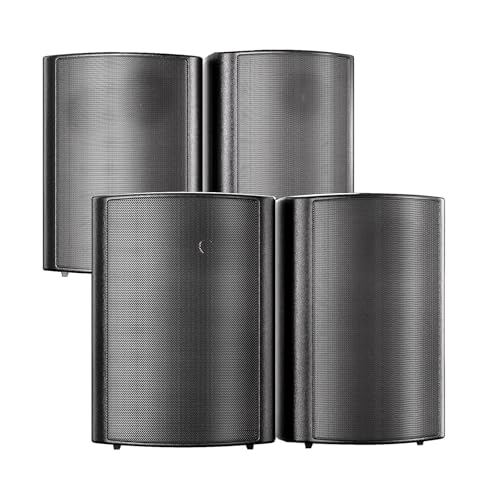Studiofinix 800 W, 6,5 tums utomhushögtalare, vattentät med Bluetooth-förstärkare, väggfäste, väderbeständig högtalare för uteplats, trädgård, poolside Home (4 högtalare, svart)