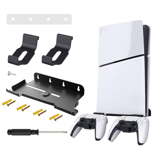 Aceshop Väggfäste PS5 slim stabil stålväggstativ hållare för PS5 smal konsol med styrenhetshållare, svart