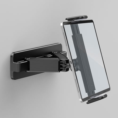 BEWISER Väggfäste för surfplatta grå, höjdjusterbar iPad-hållare, kompatibel med 4,7–12,9 tum kuddar, telefon, Galaxy Tab, skruvbar 360° roterbar, för vägg, kök,