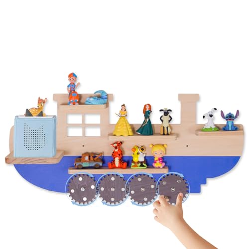Todeco Magnetisk hylla, för Tonie Box och Tonies, upp till 10–15 tonies, vägghylla, speldosehylla för barn, skeppsform