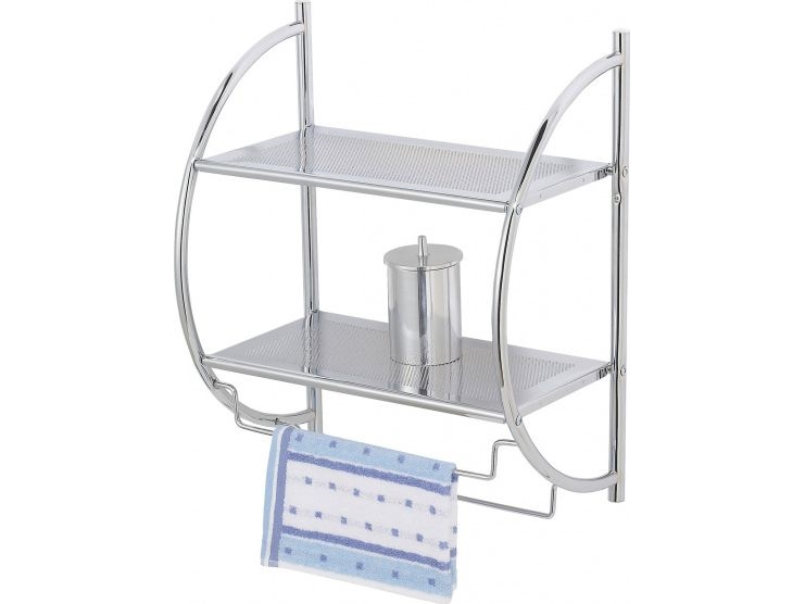 WENKO Vägghylla krom – 2 hyllor, 2 flexibla handduksskenor, stål, 45,5 x 54,5 x 26 cm, krom