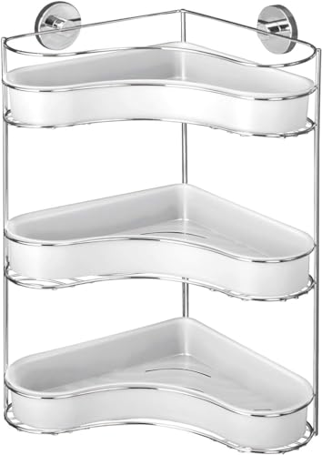WENKO Turbo-Loc Bralia vägghylla, hylla av plast för fastsättning utan borrning, djup kupa för säker ställning av vårdprodukter, perfekt för badrum och dusch, 30 x 8,5 x 12 cm, krom, (ABS)