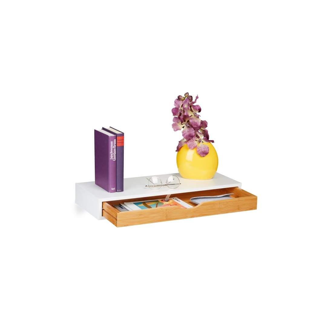 Relaxdays Vägghylla med låda, H x B x D: 8 x 60 x 24 cm, vägglåda skandinavisk design, MDF, bambu, natur, trämaterial, vit, ljusbrun