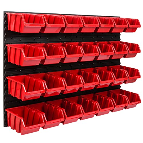 32 delar, stapelbara lådor, vägghylla, set, verkstad, lager, skruvlåda, verkstadshylla, förvaringshylla, låda, sortimentslåda, hyllsystem, plug-in hylla