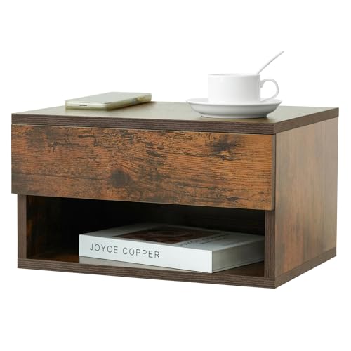 LYNCOHOME Vägghylla med låda, hängande nattduksbord, nattduksbord, väggmontering, vägglåda, väggbräda sovrum, vintagebrun