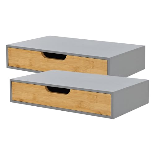 [en.casa] Vägghylla, set om 2, låda med låda, bambu, flytande hylla, nattduksbord, 40 x 24 x 8 cm, grå