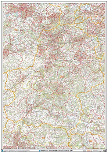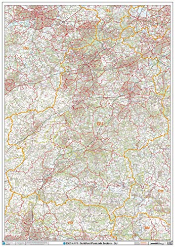 Guildford – GU – postnummer väggkarta – plastbelagd