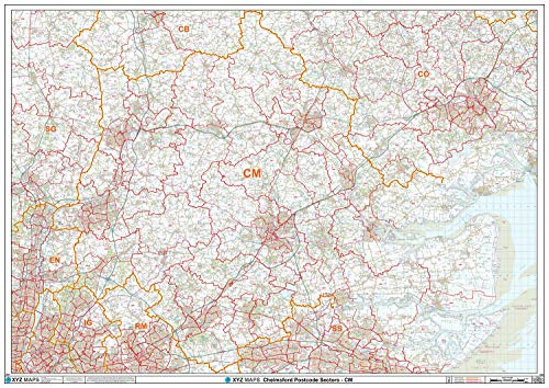 Chelmsford - CM - postnummer väggkarta - papper