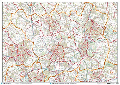 St Albans - AL- postnummer väggkarta - papper
