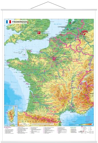 Stiefel Väggkarta över Frankrike: mit UNESCO-Welterbestätten und Nationalparks, Kleinformat