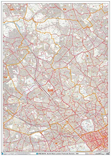 Nordvästra London - NW - postnummer väggkarta - papper