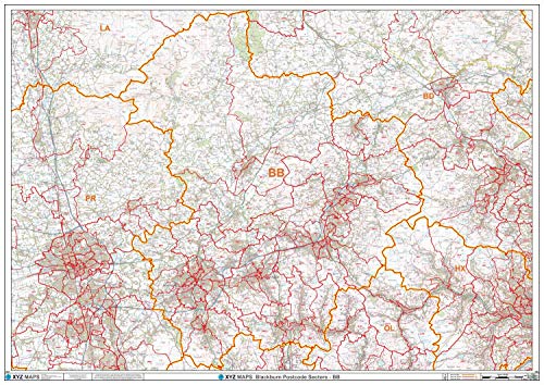 Blackburn - BB - postnummer väggkarta - papper