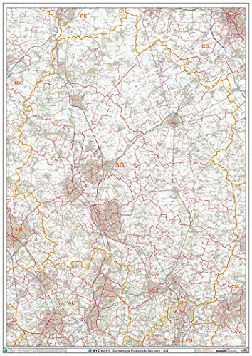 Stevenage – SG – postnummer väggkarta – plastbelagd