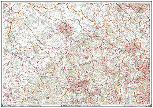 Hemel Hempstead - HP - postnummer väggkarta - papper