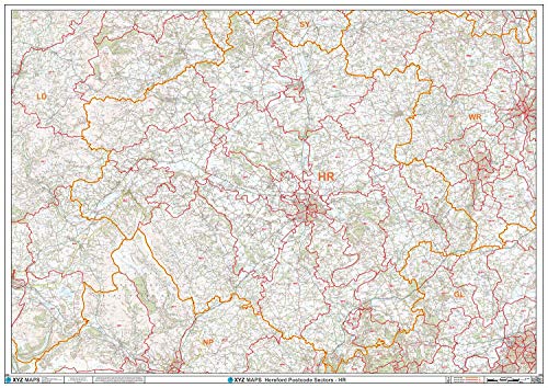 Hereford – HR – postnummer väggkarta – papper