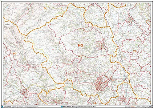 Harrogate - HG - postnummer väggkarta - papper