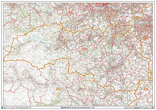 Durham - DH - postnummer väggkarta - plastbelagd