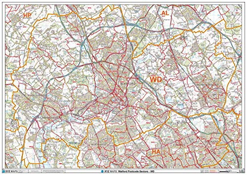 Watford - WD - postnummer väggkarta - papper