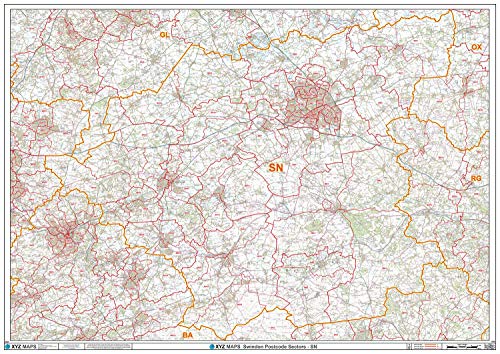Swindon - SN - postnummer väggkarta - plastbelagd